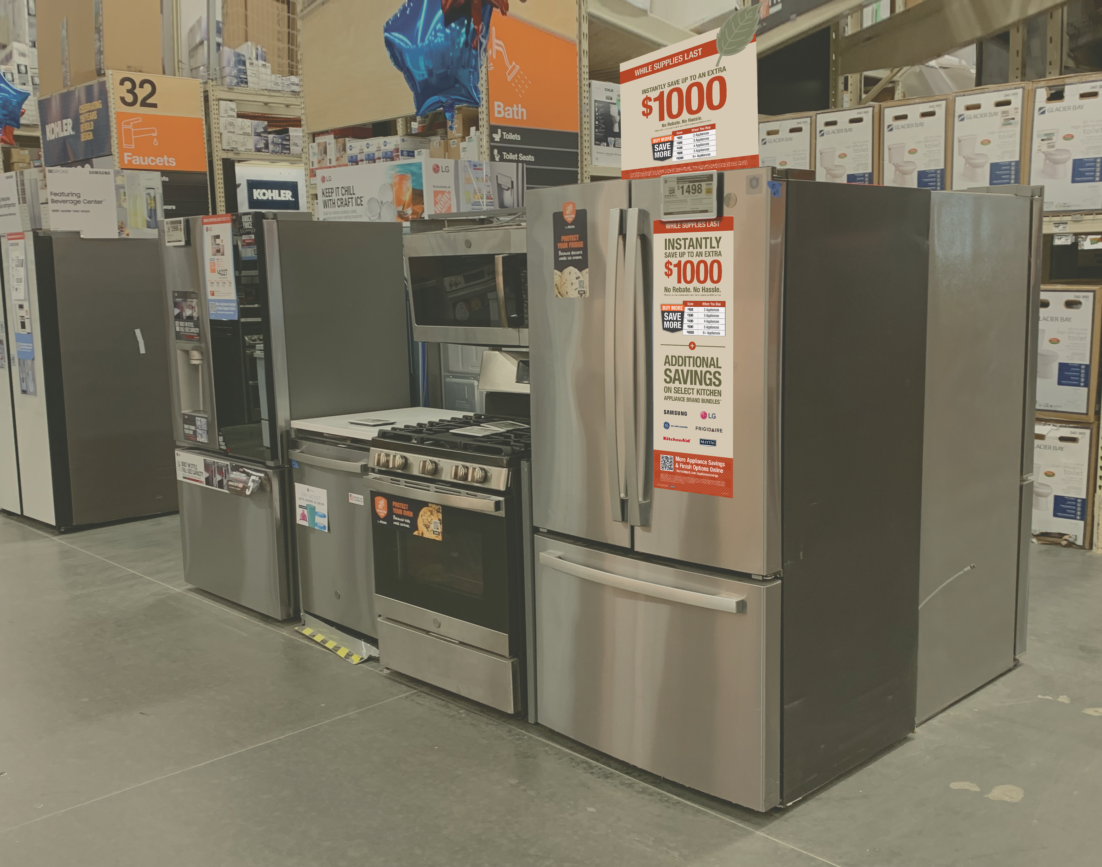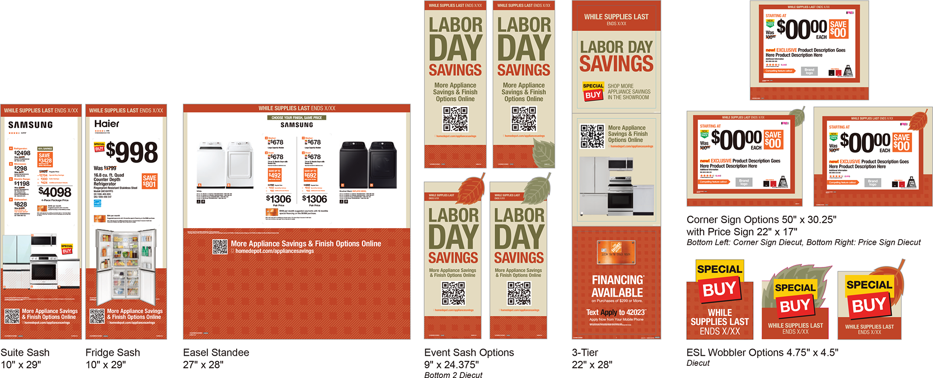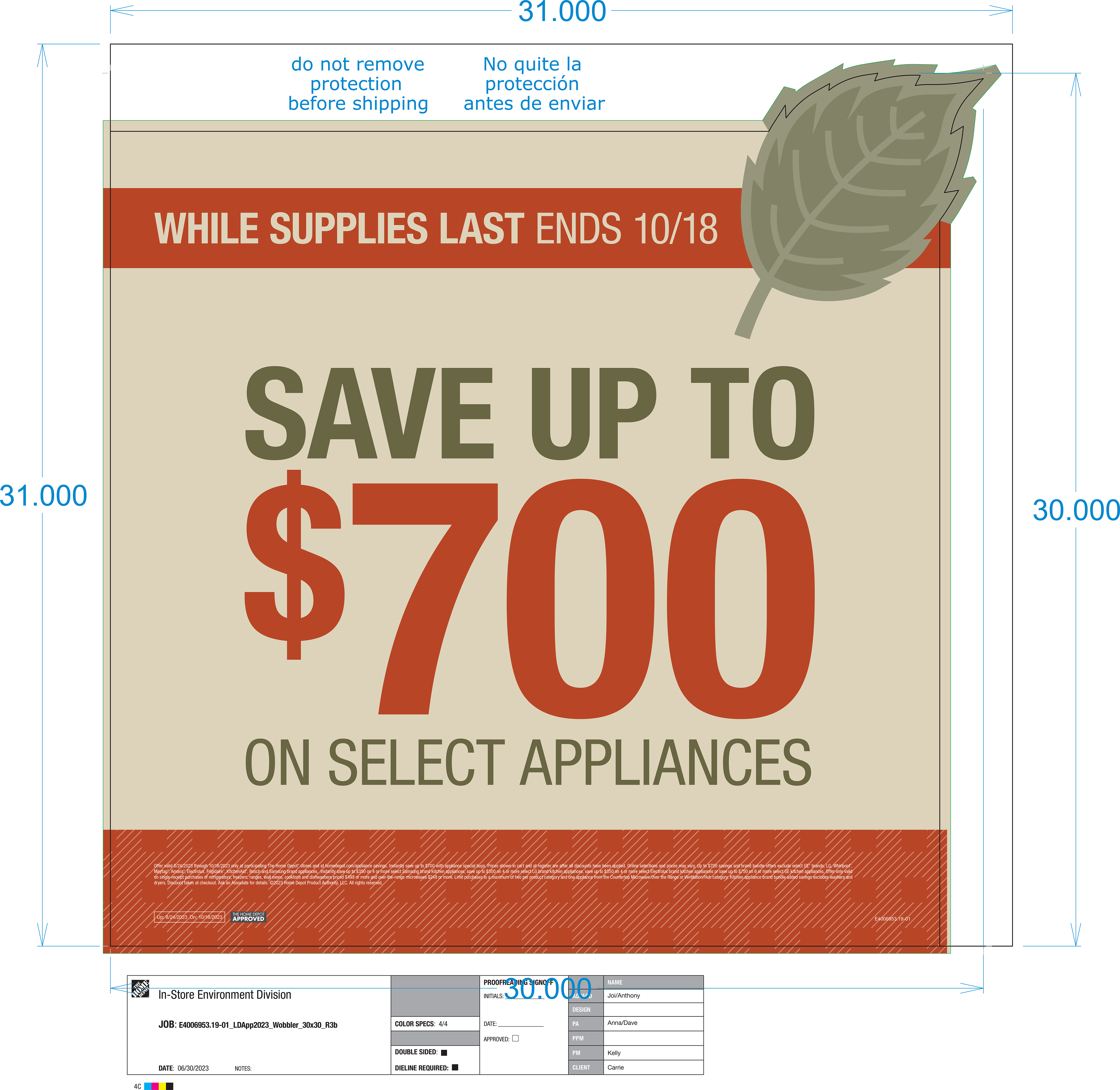 Role: Graphic Designer for RR Donnelley Client: The Home Depot Developed look and feel for Labor Day Appliances POP. The leaf diecut was used across many fixtures from wobblers to UBSs.