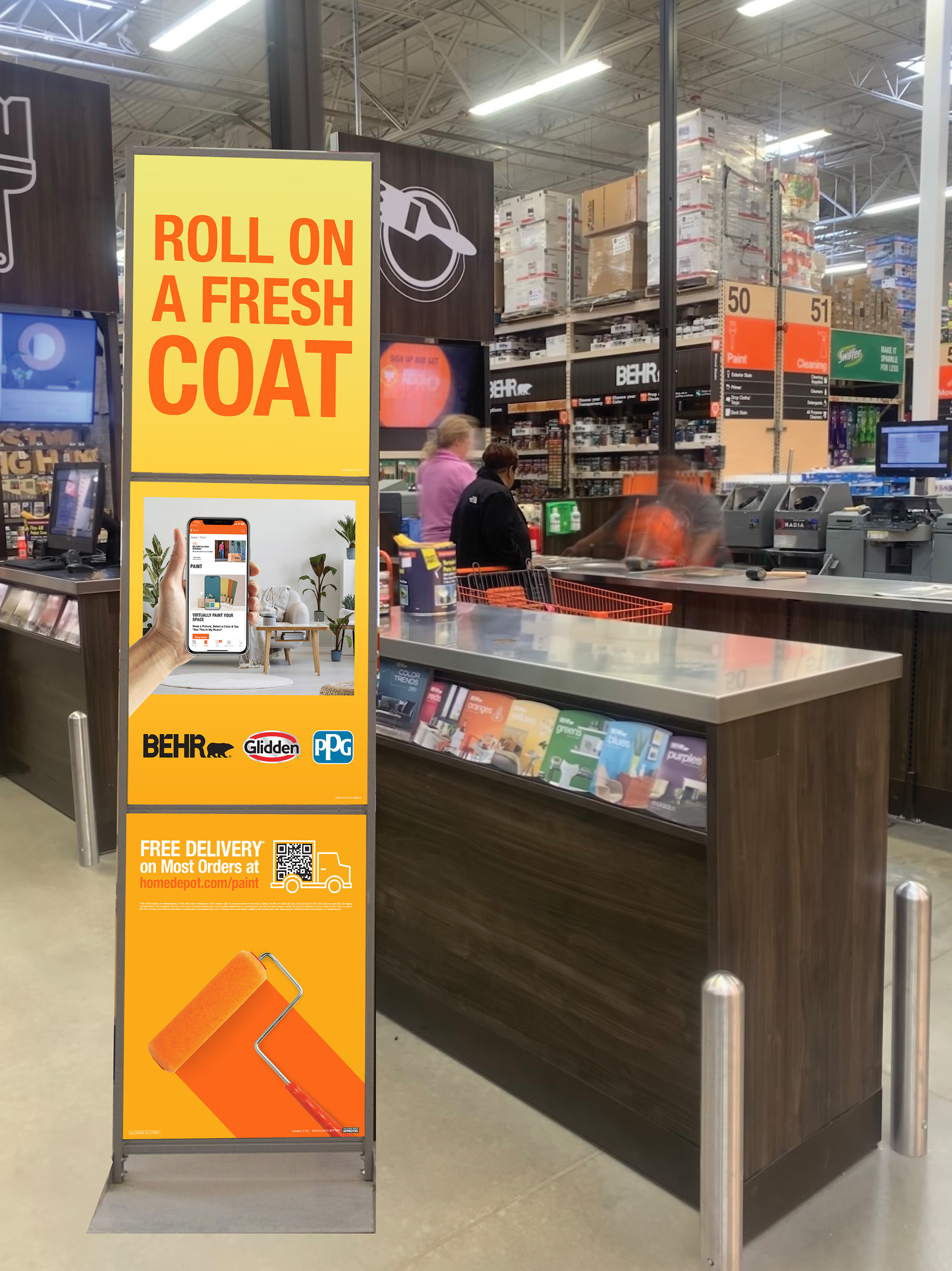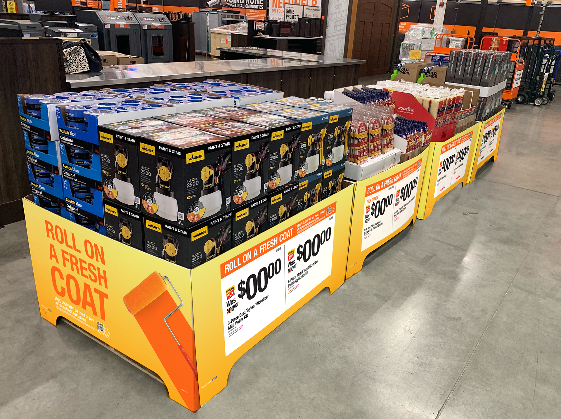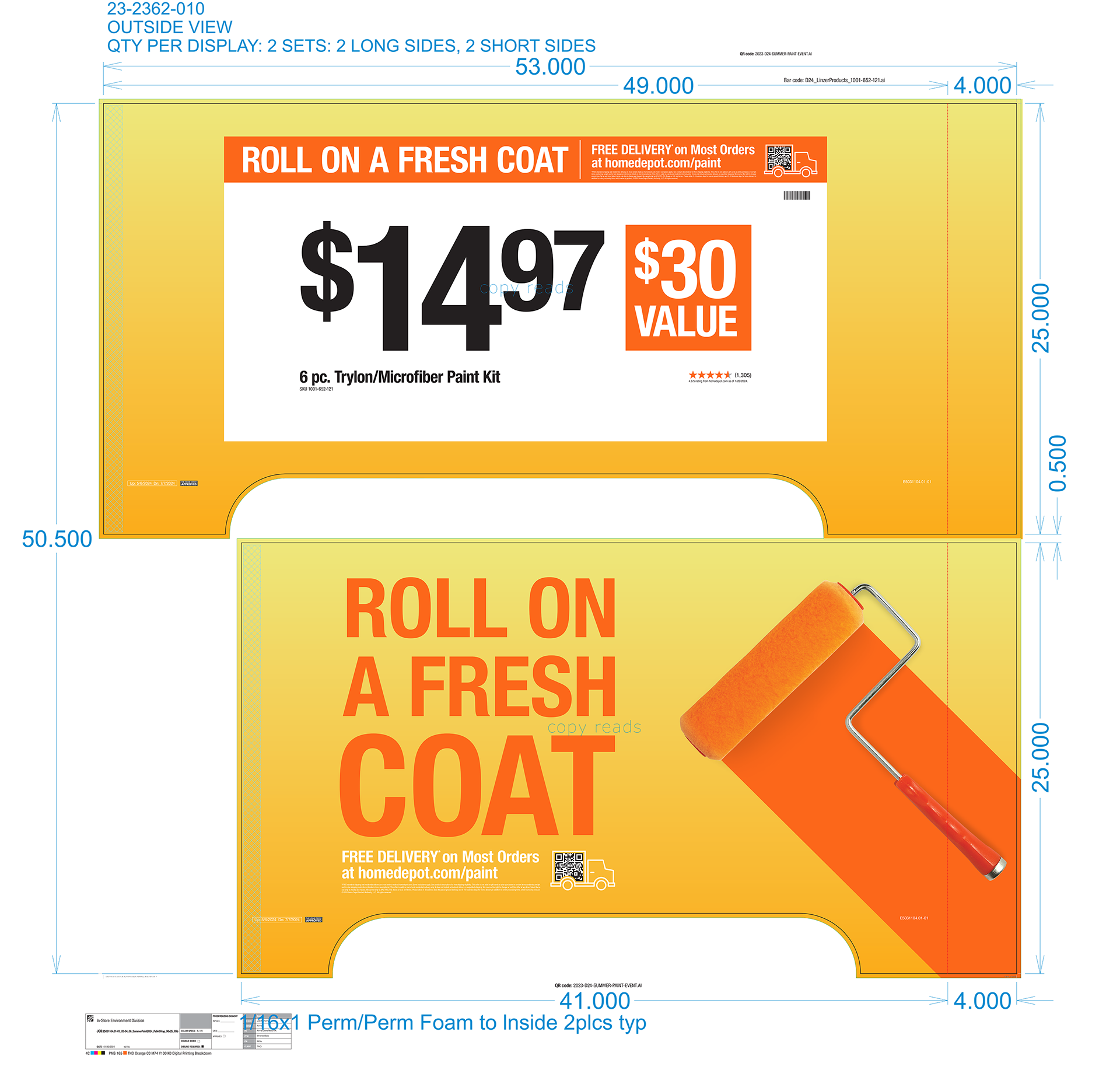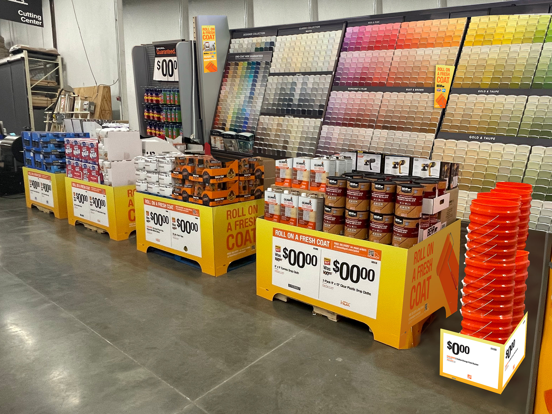Role: Graphic Designer for RR Donnelley Client: The Home Depot Pallet wraps, UBS, and other POP for The Home Depot’s Summer Paint event that ran in 2023. Designed from concept to production.